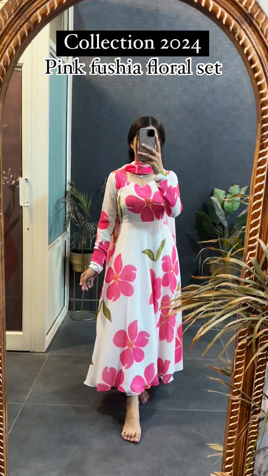 New Collection Pink Fushia Floral Set in Long Sleeves with Duppta