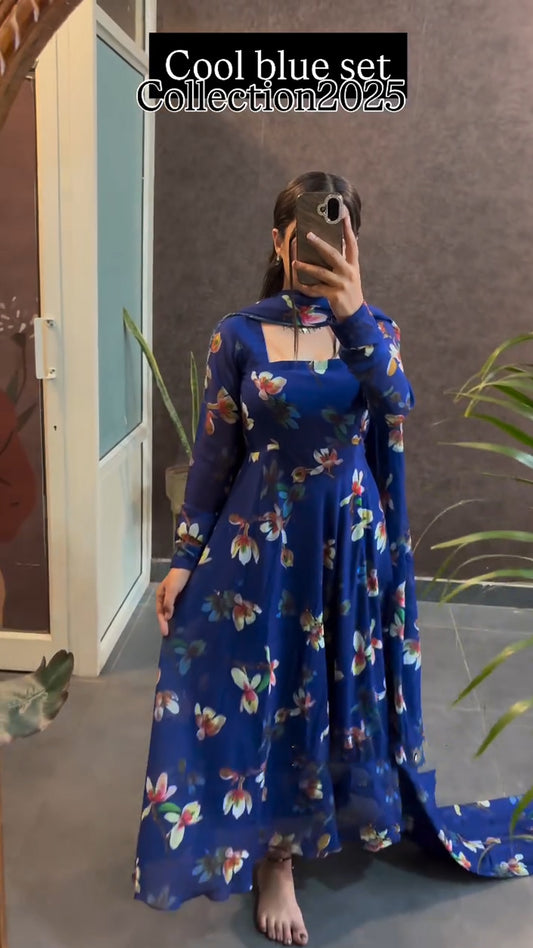 Summer friendly Floral Fantasy Royal Blue Ethnic Set