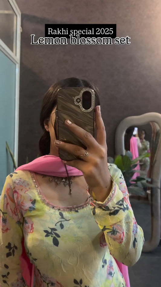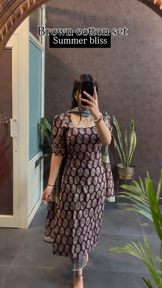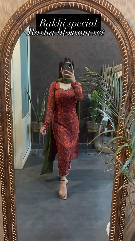 Rasha Rust Blossom Kurta Pant Dupatta Set