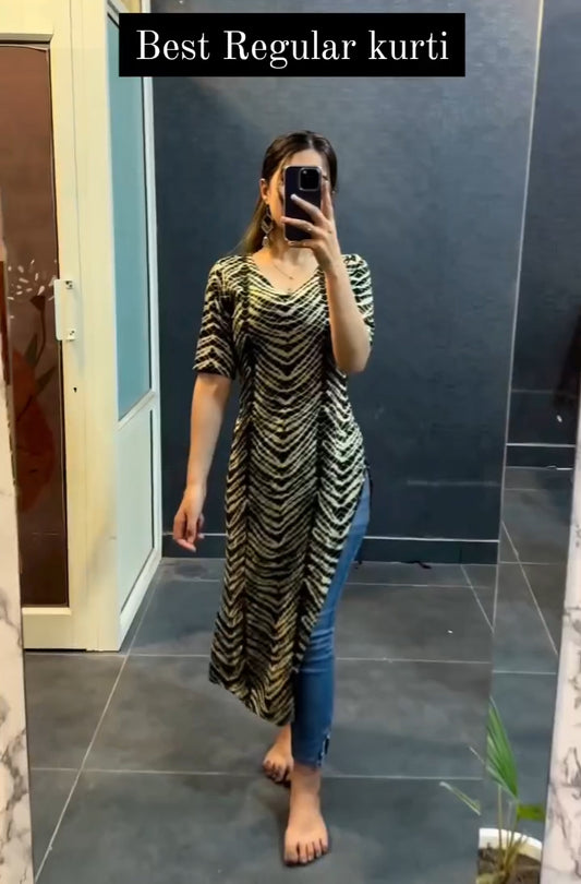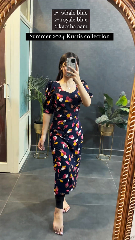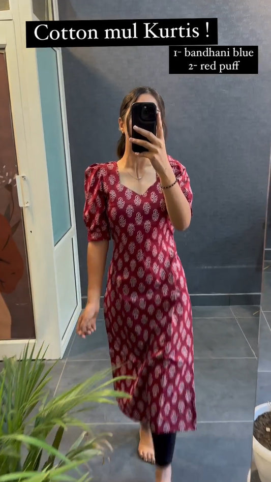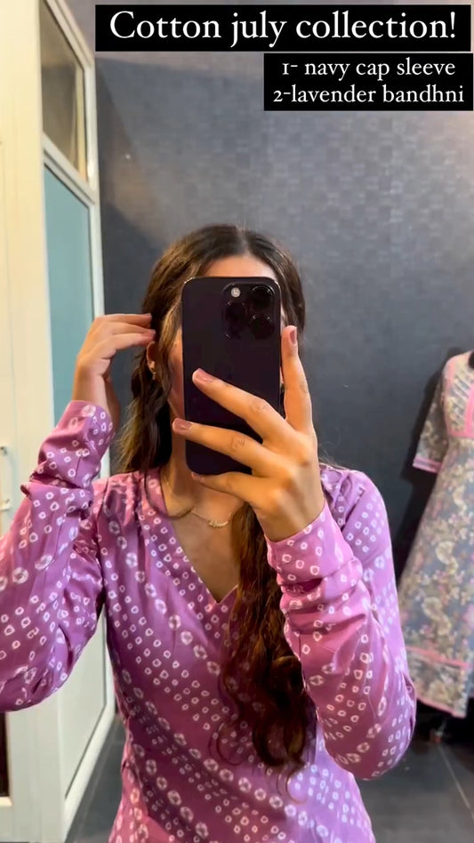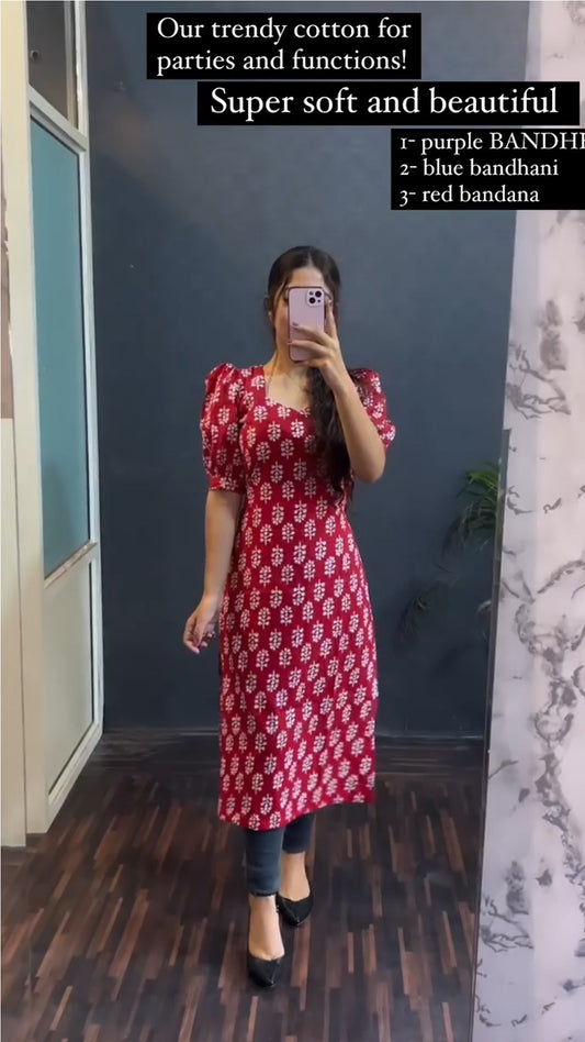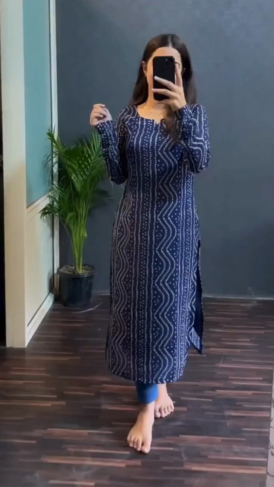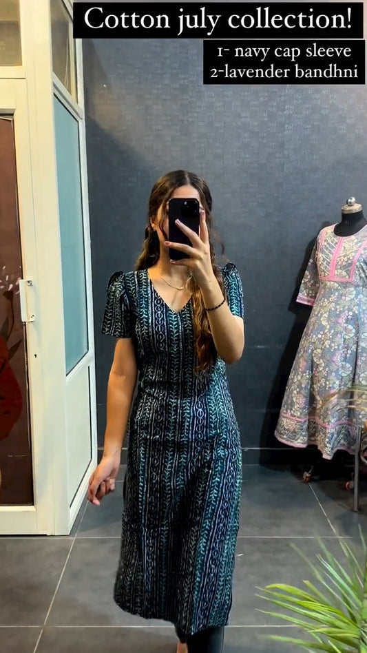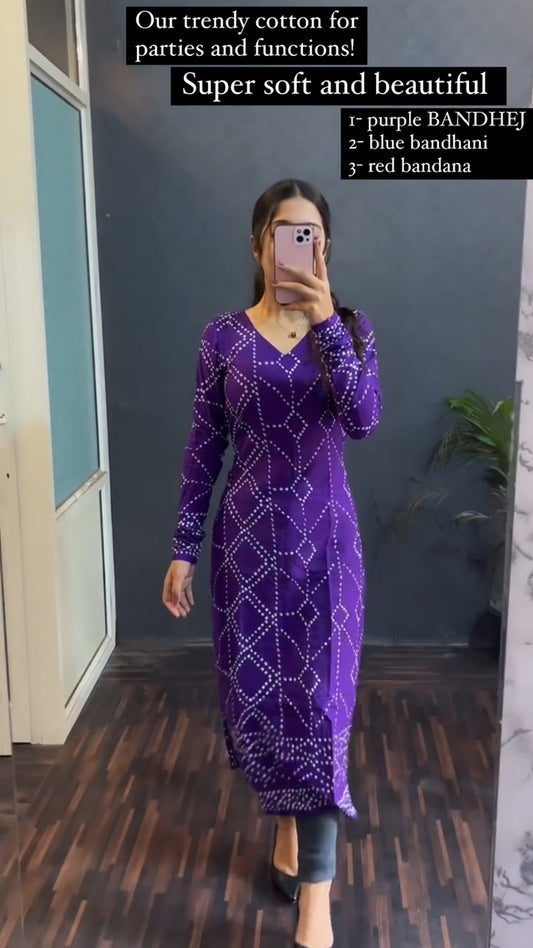 New Blue Bandhani Cotton Printed Kurtis For Women