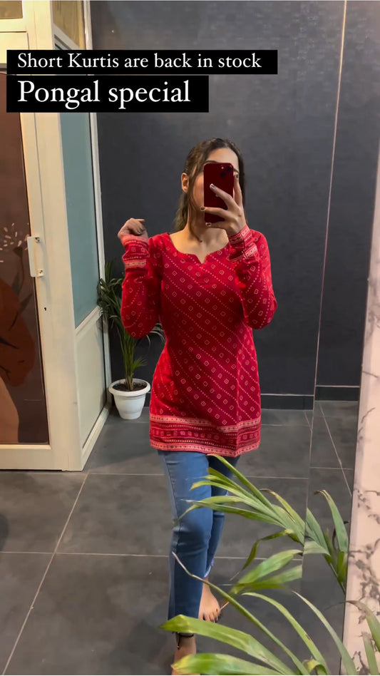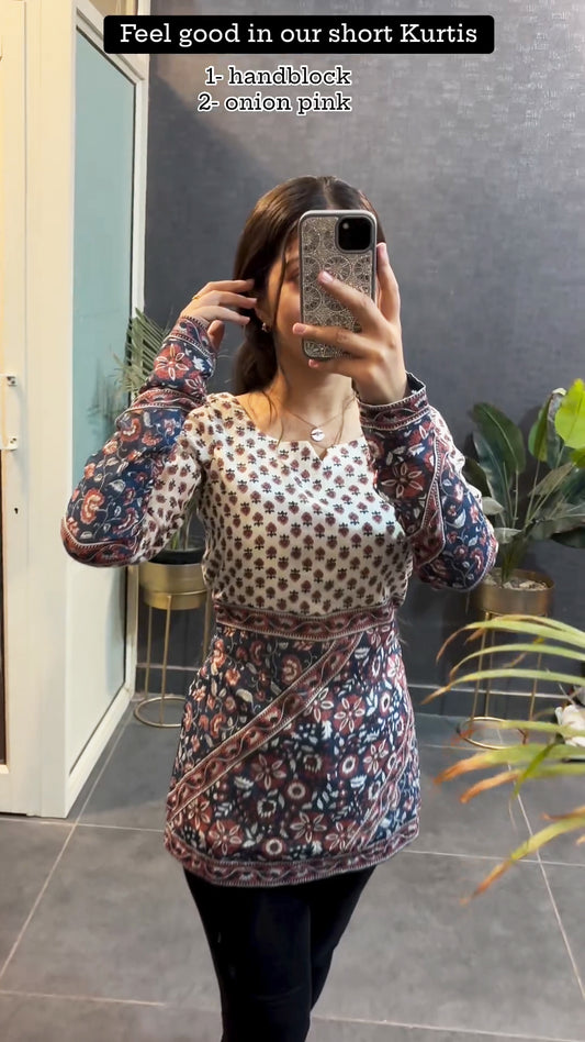 Office Special Short kurtas in Ajrakh Print Lining Attached