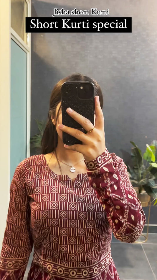 Foral Printed Short Cotton Kurtis in Full Sleeves