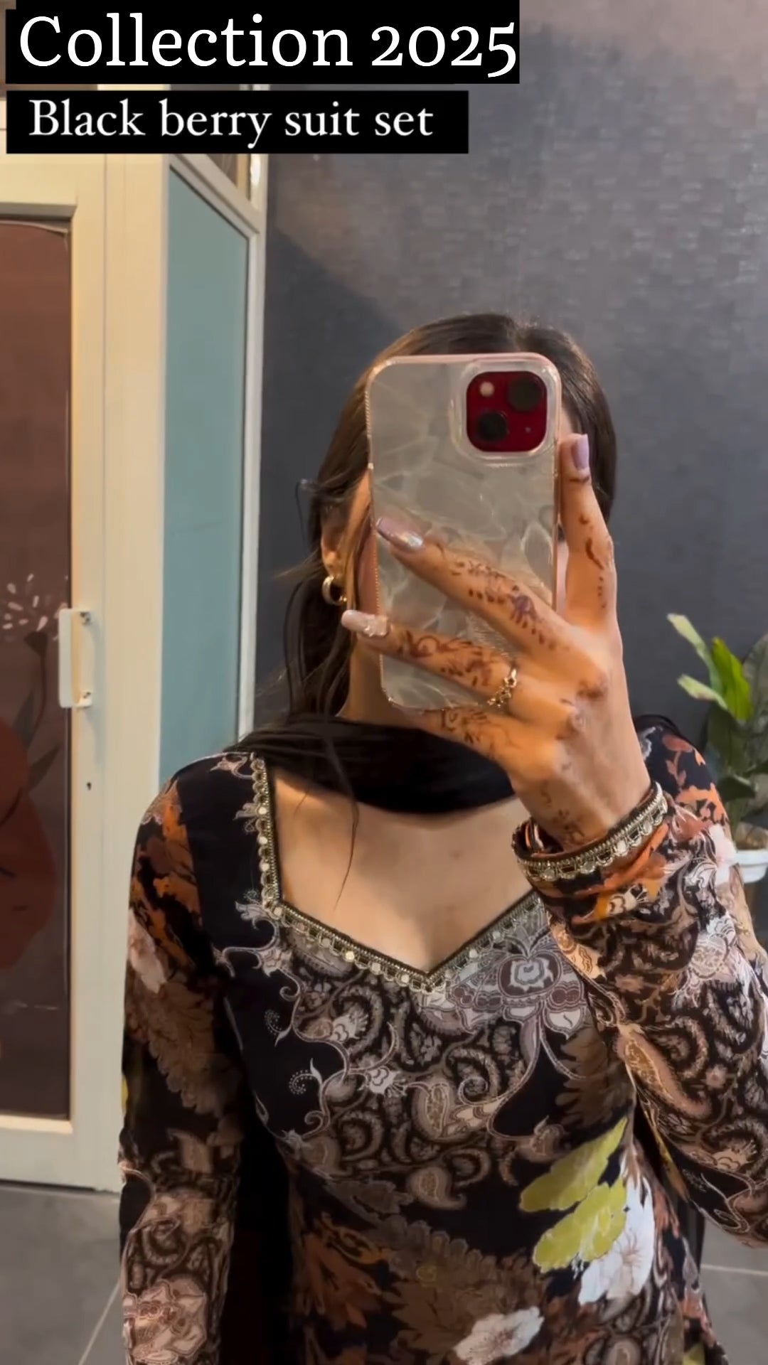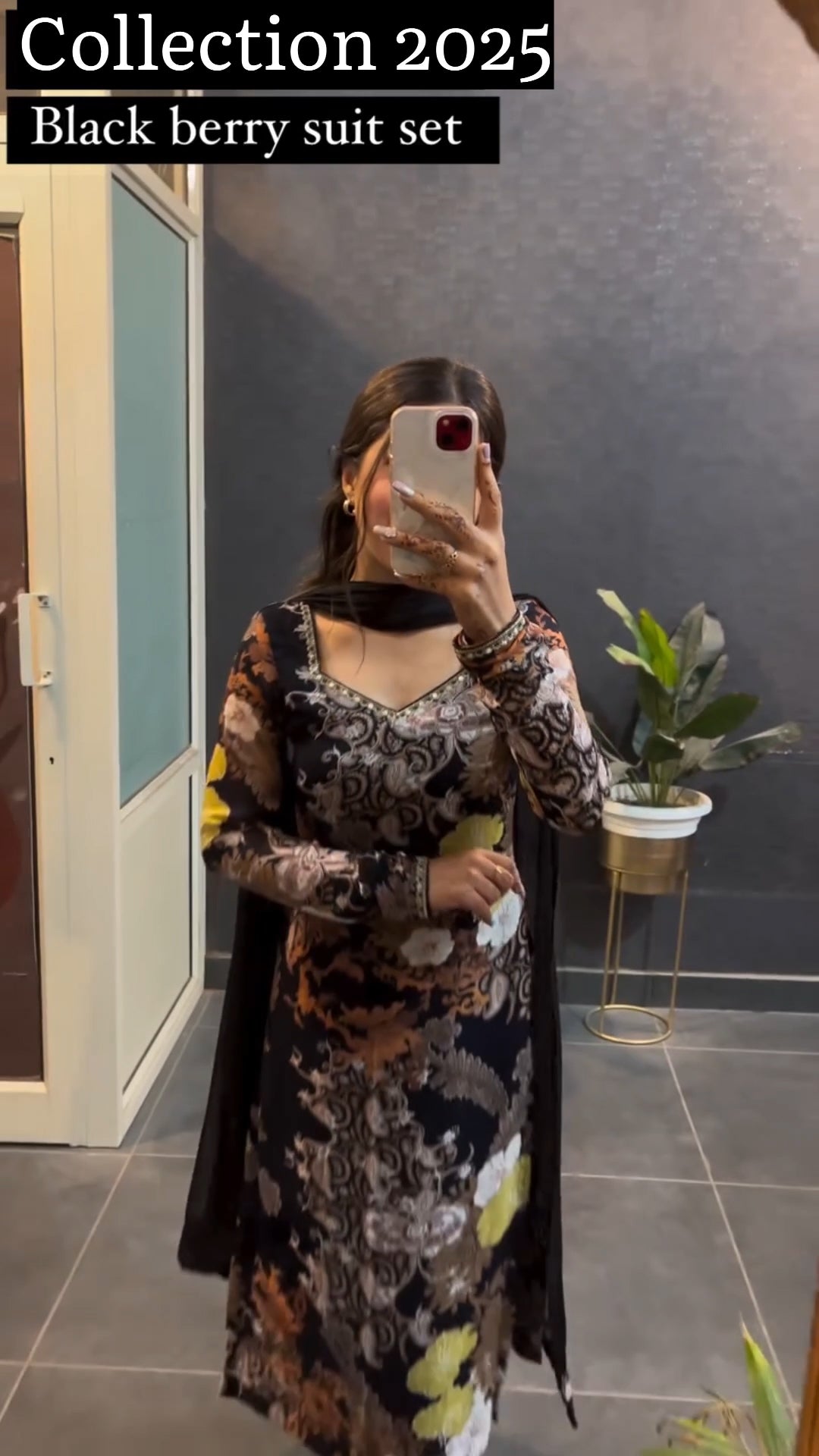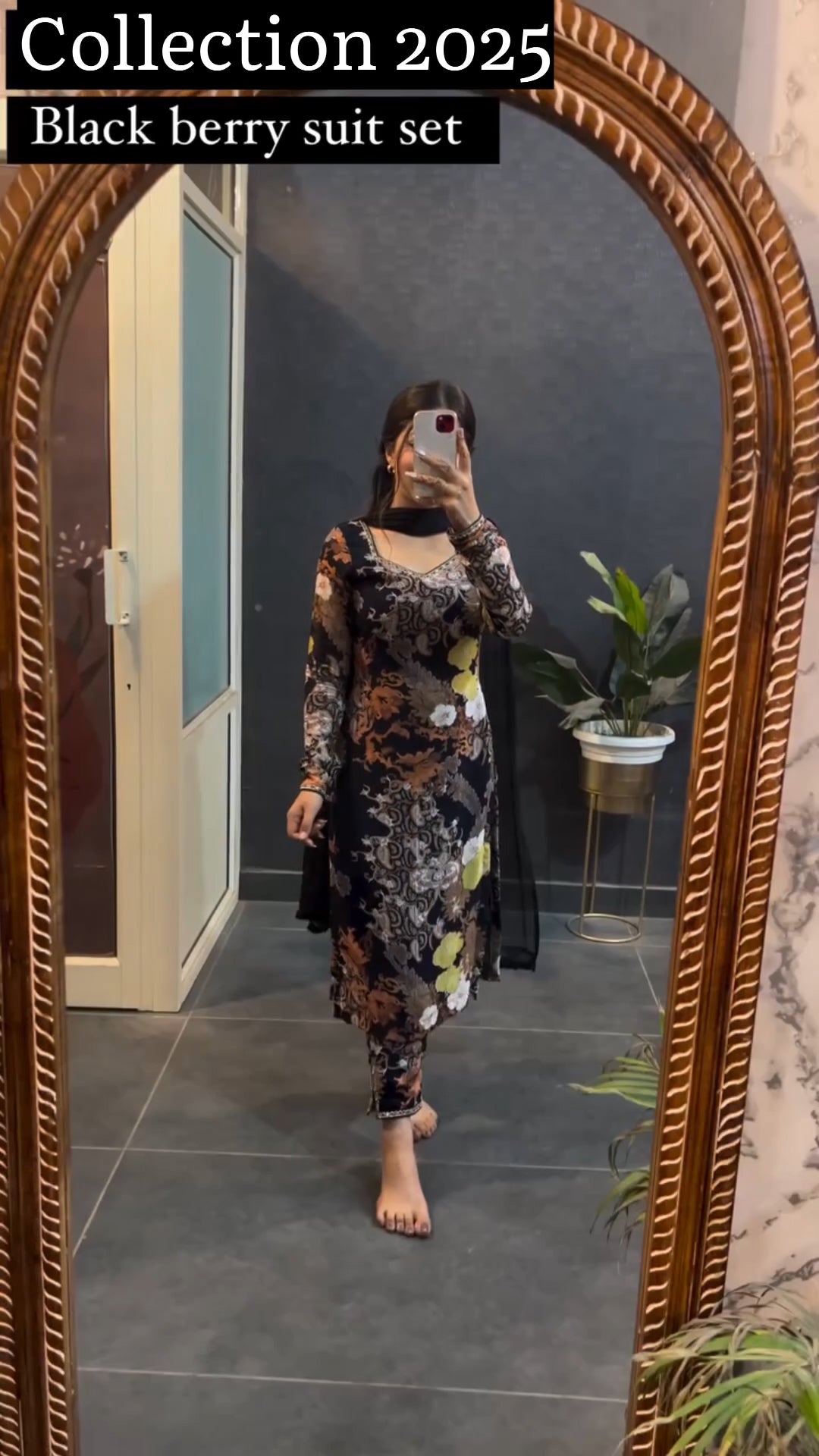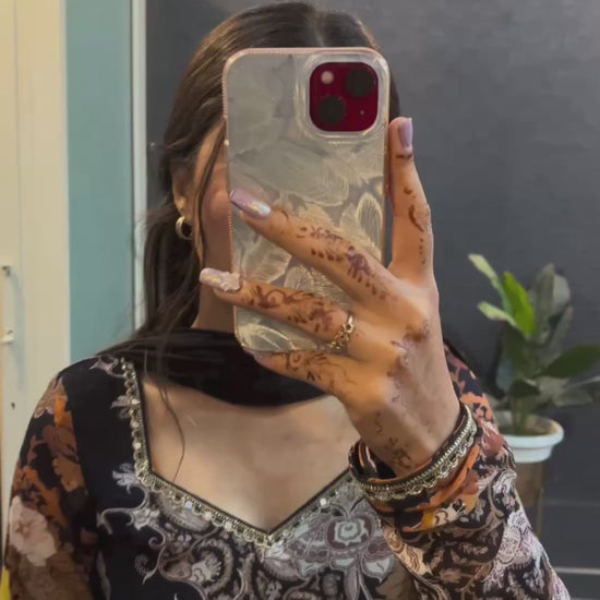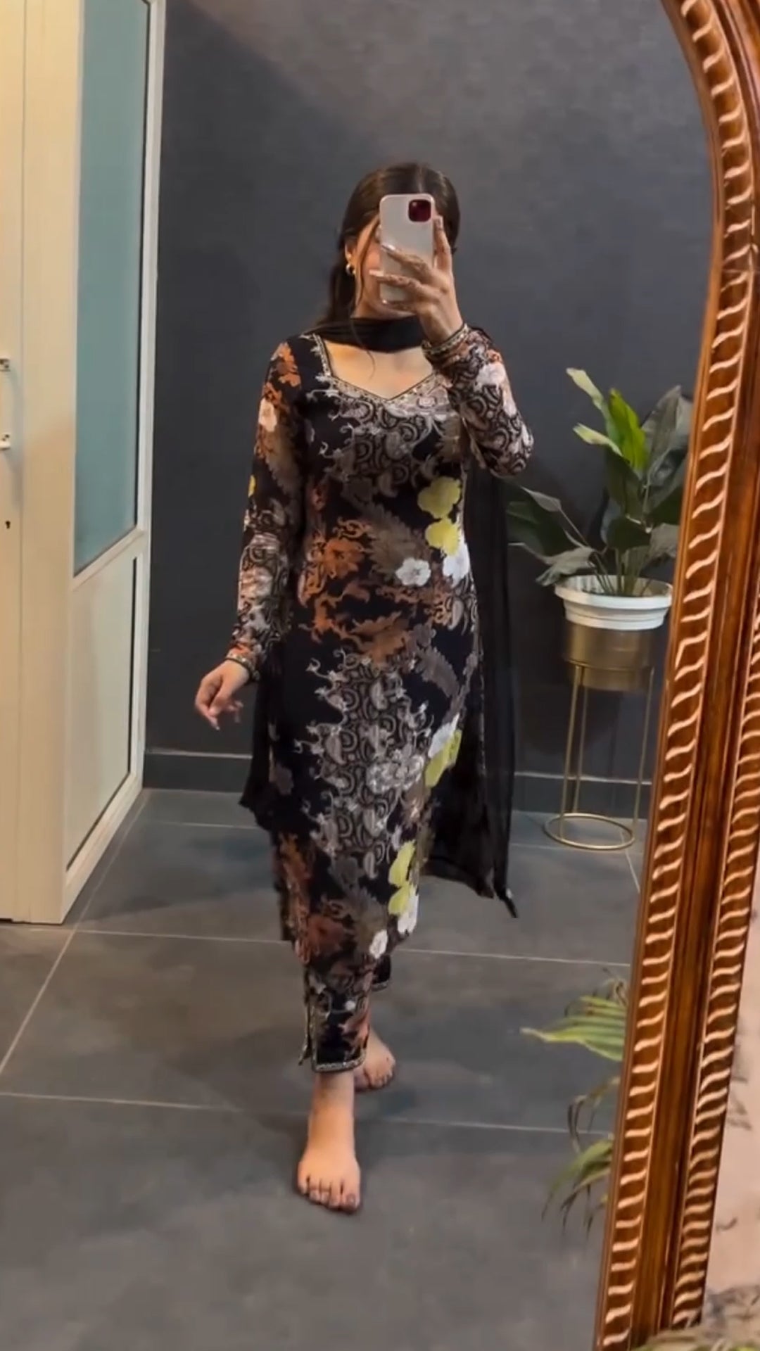 Black Floral Printed Cotton Blend Salwar Suit with Dupatta