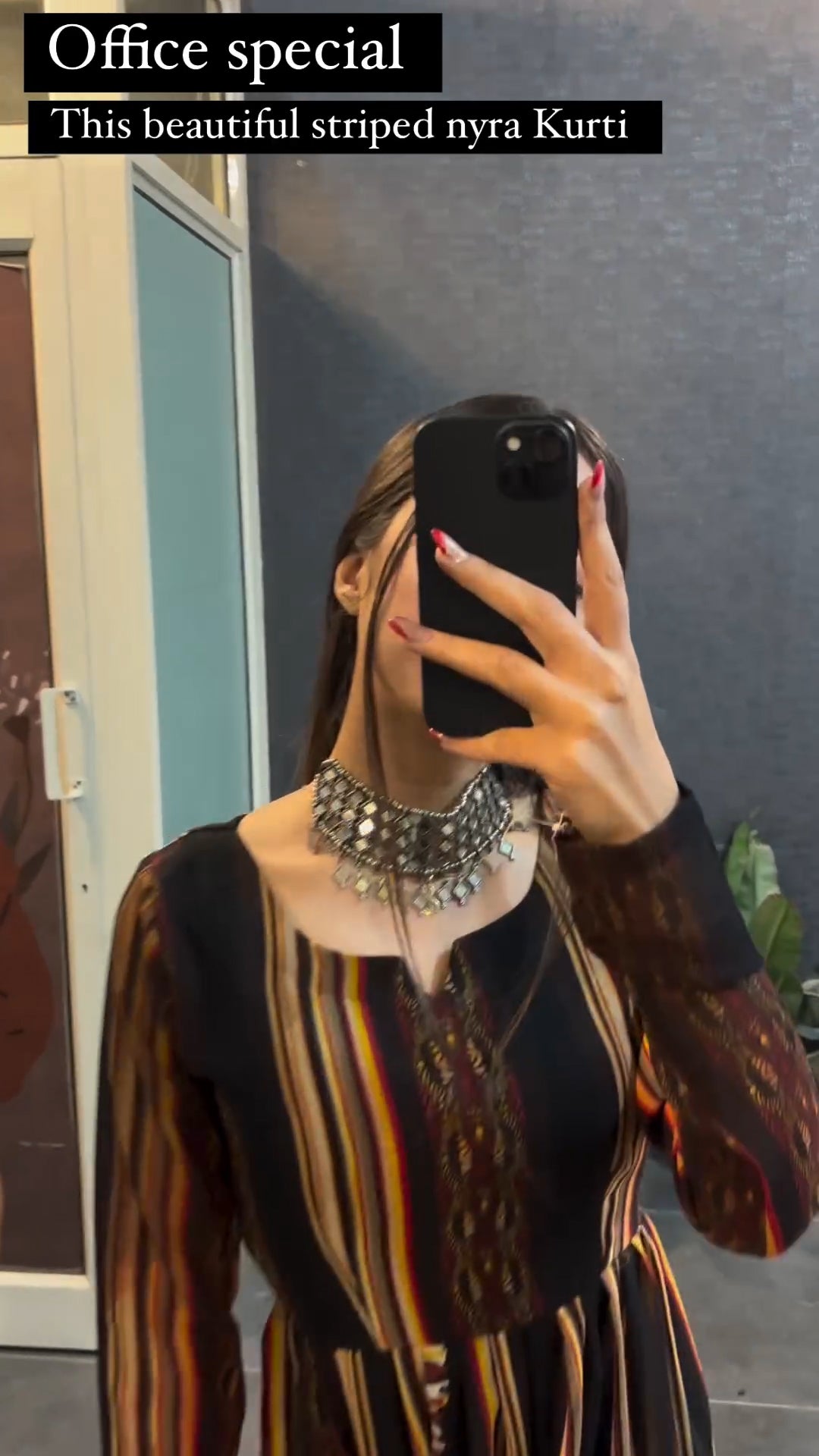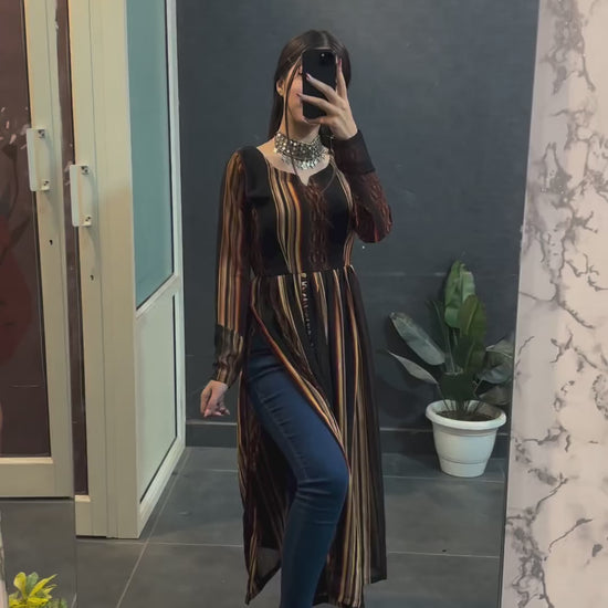 Brown Schiffon Multi Striped Nyra Kurti