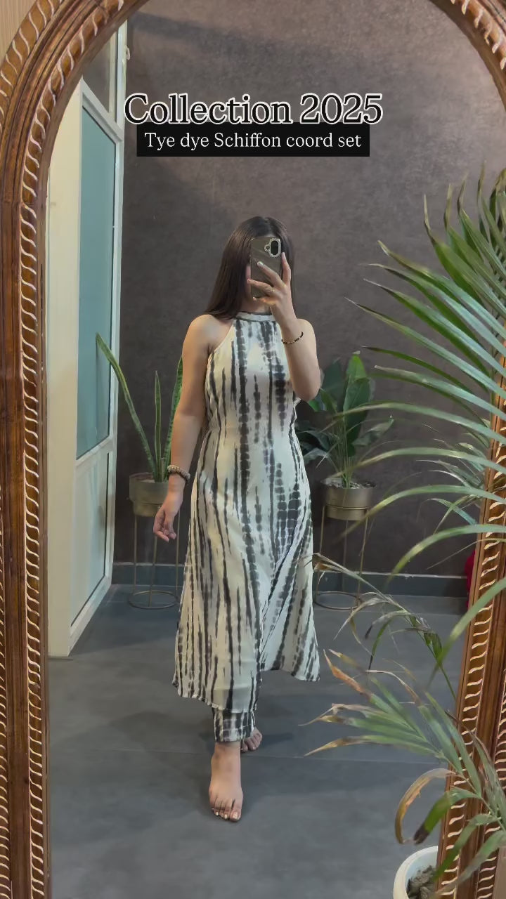 Elegant Storm Tie-Dye Chiffon Coord Set