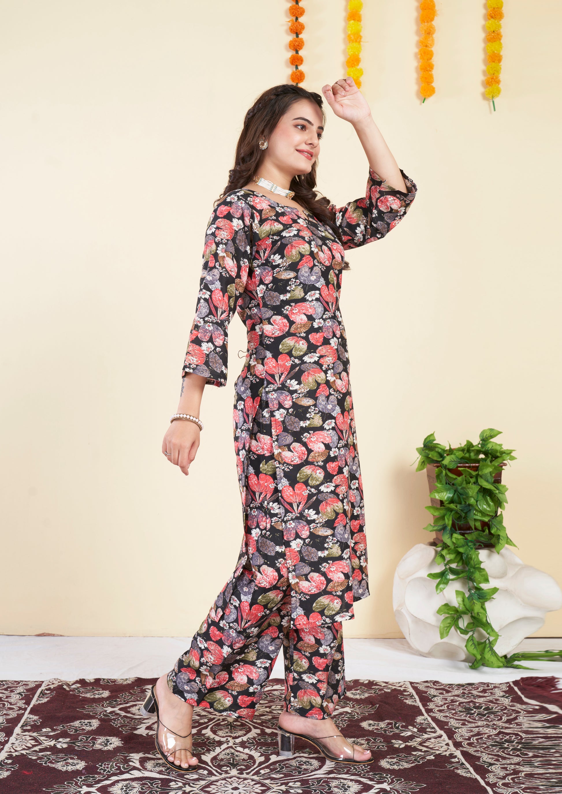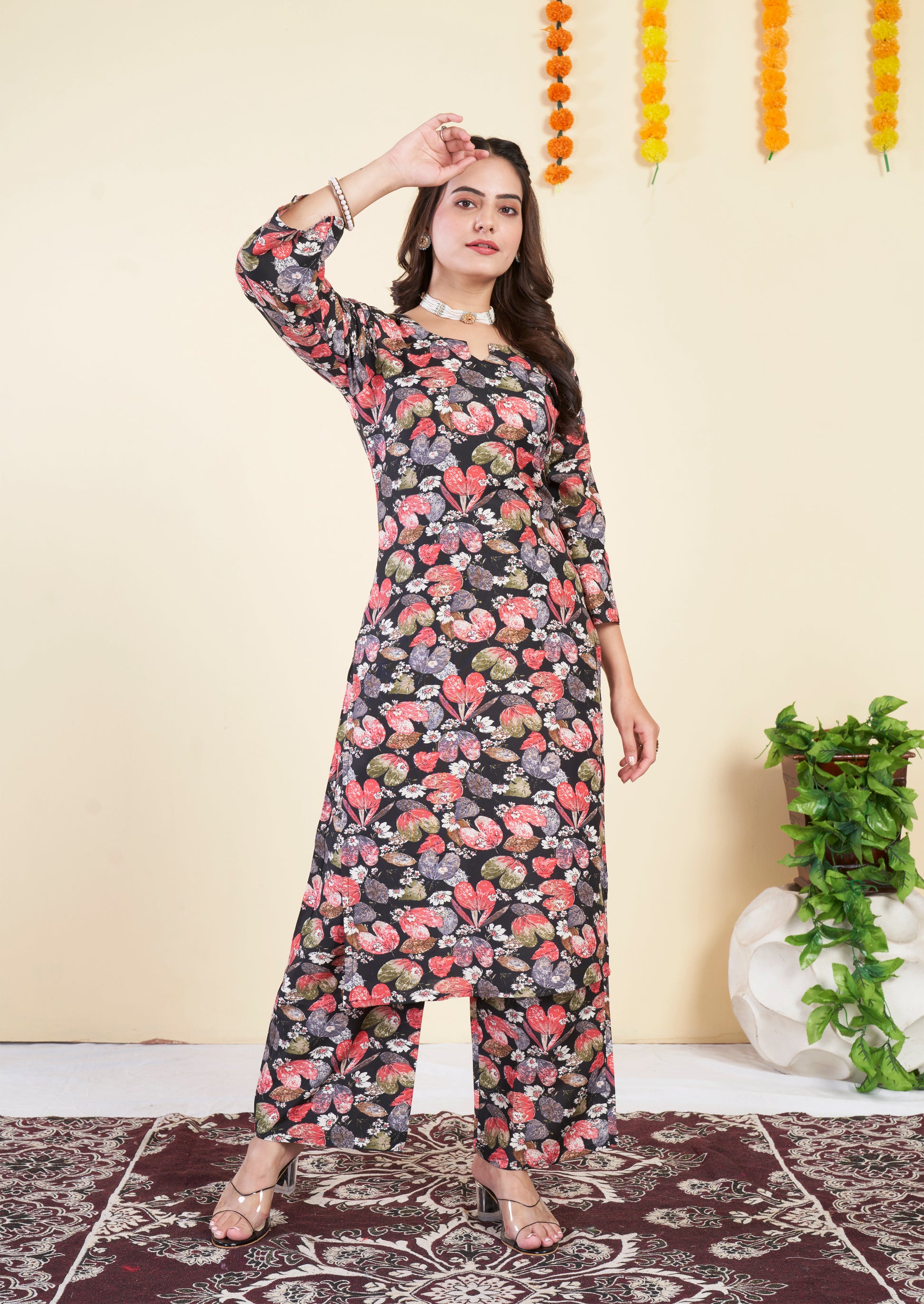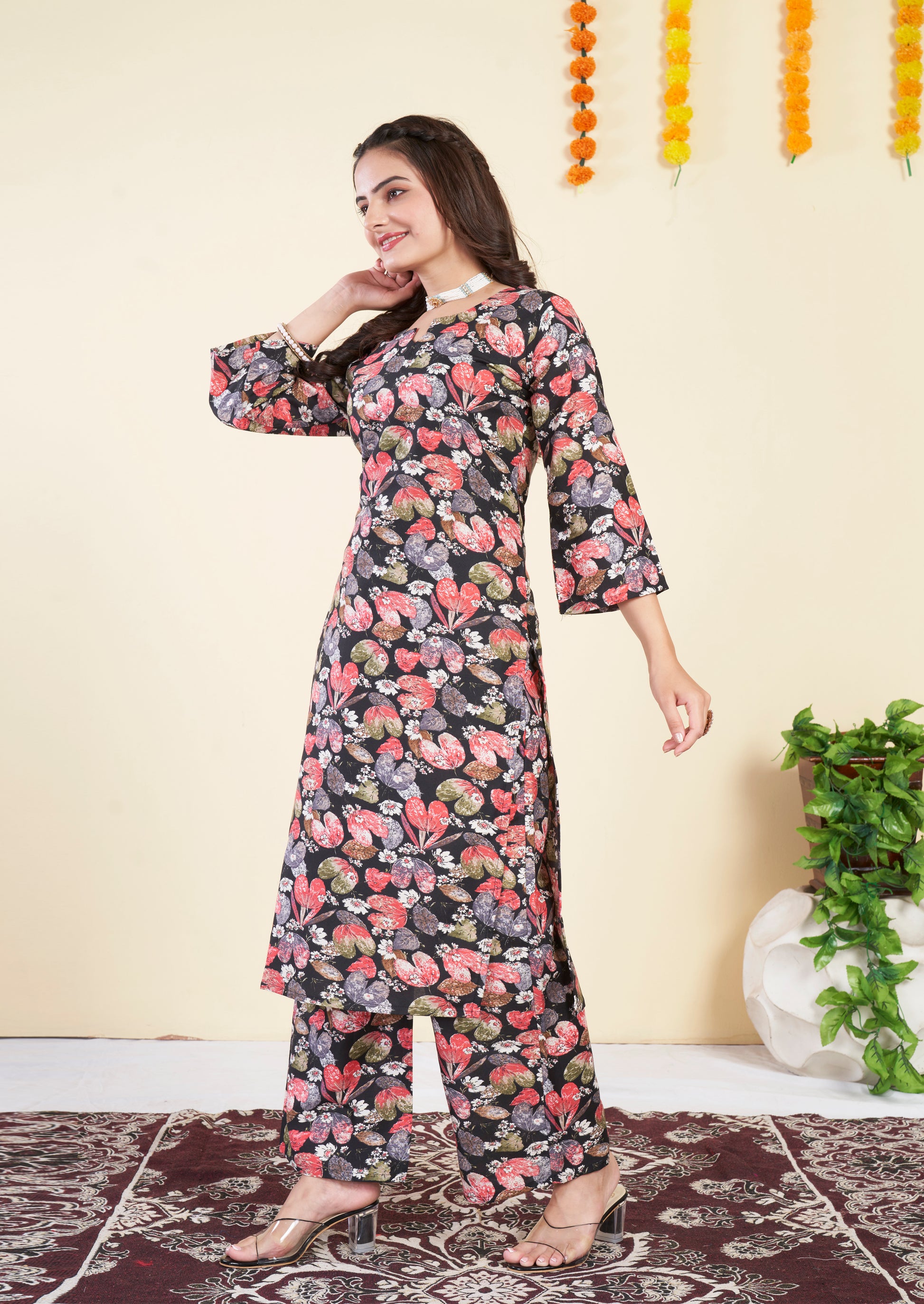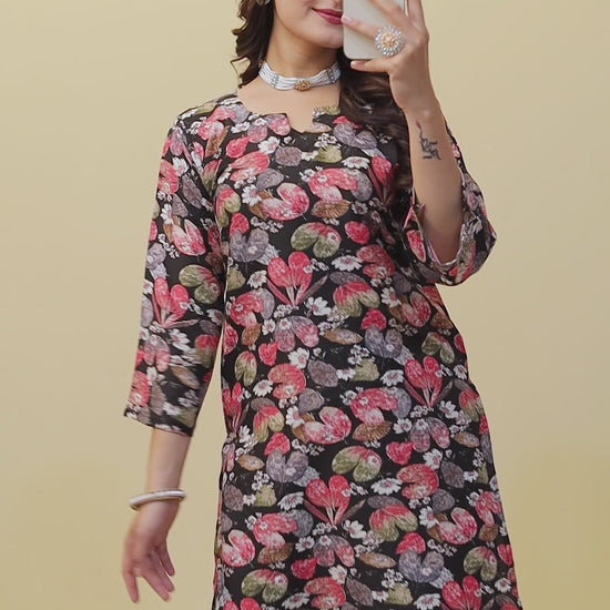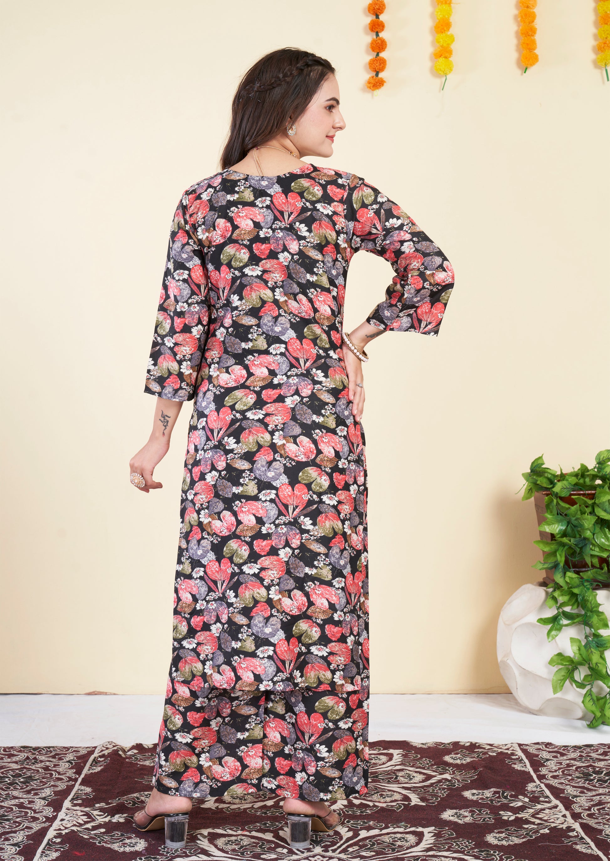 Floral Printed black Cotton Co ord Set