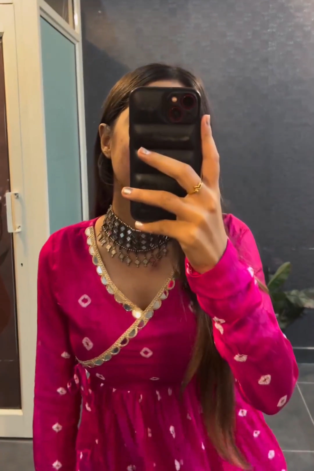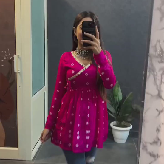 New Gulabi Bandhani Schiffon Fabric With Less Work Top
