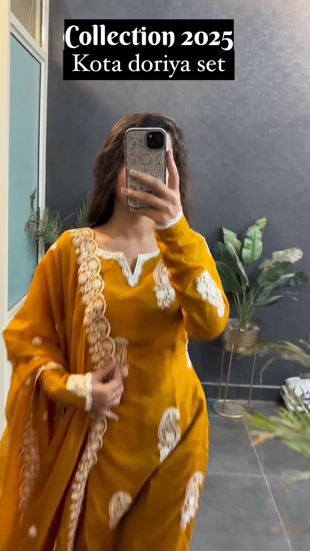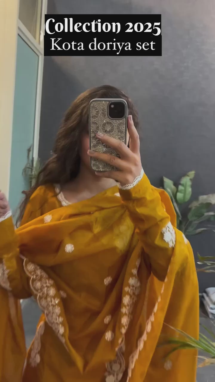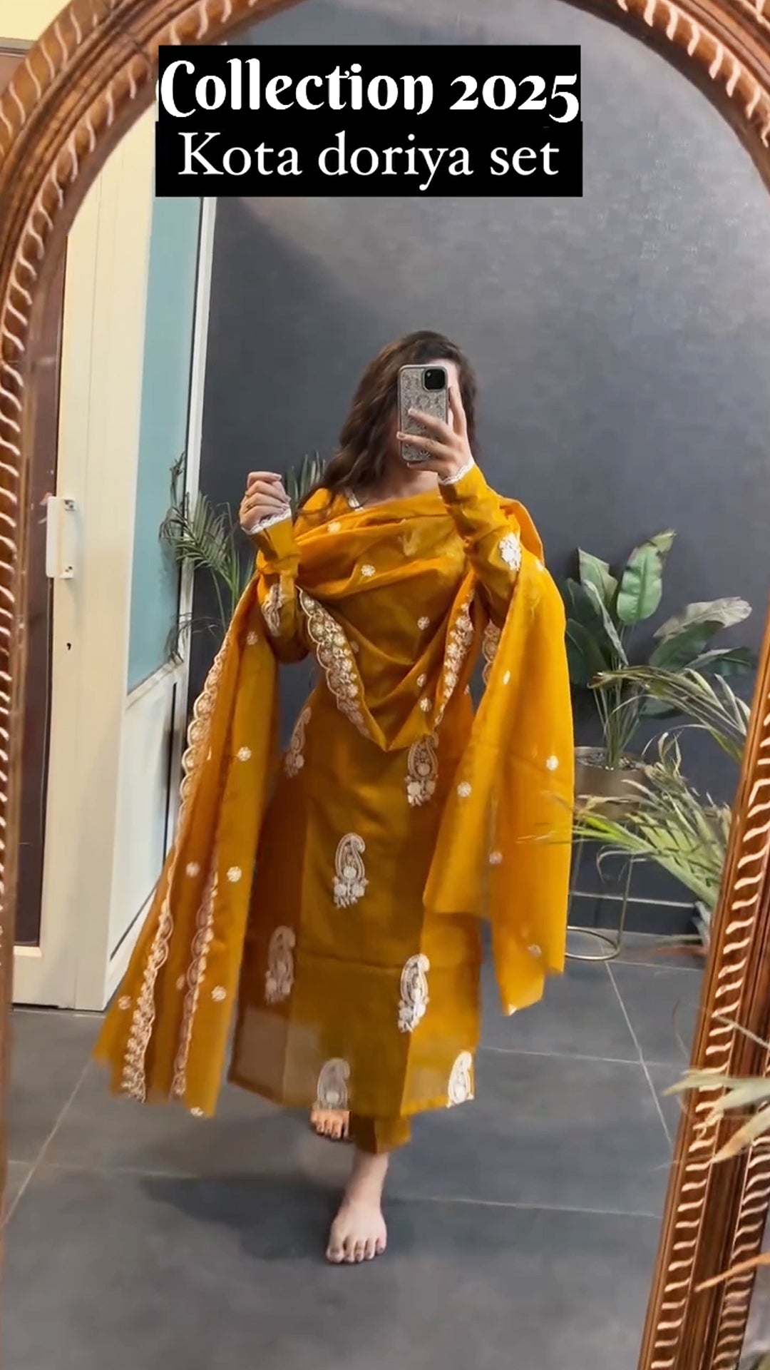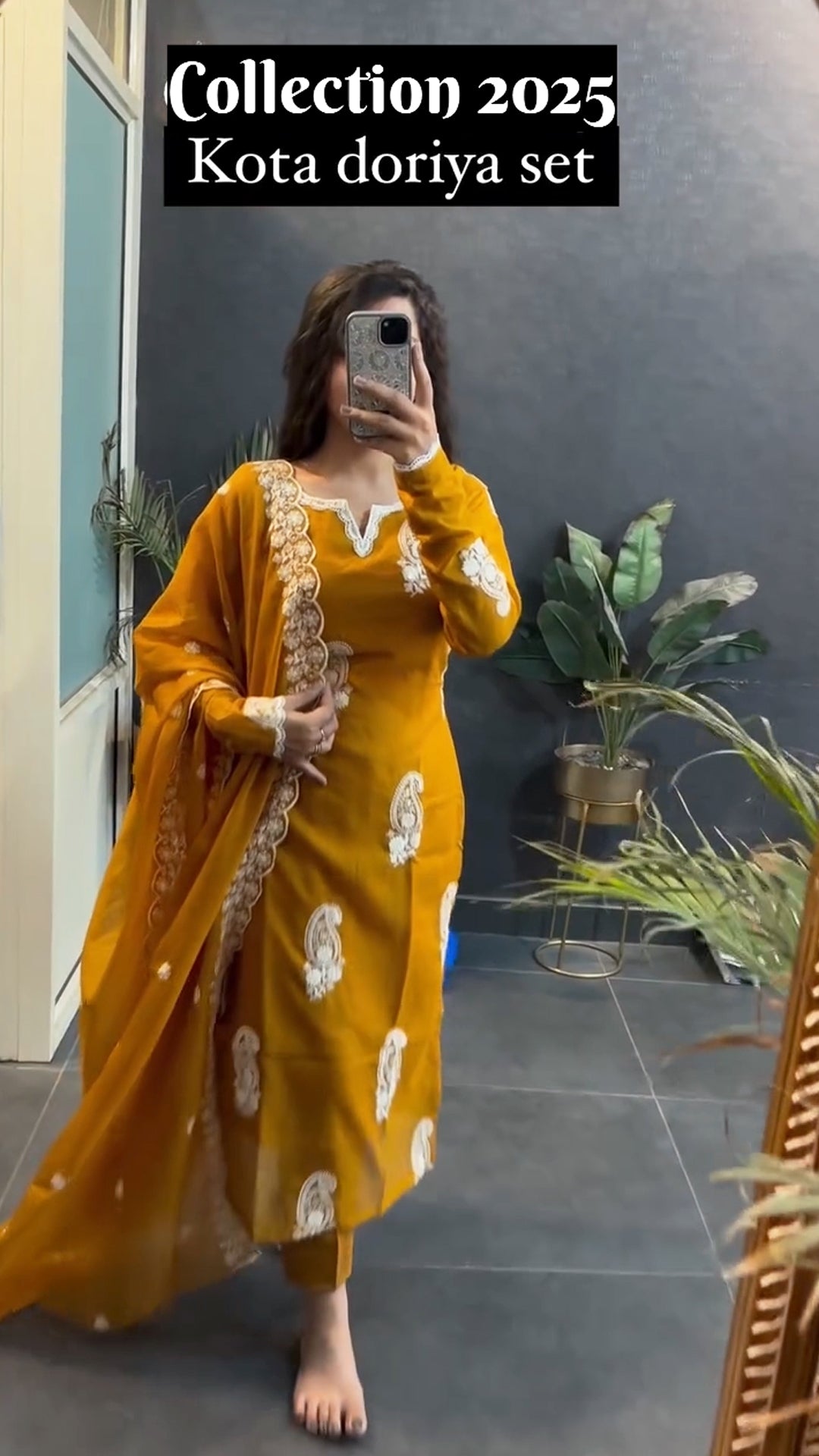 Kota Doriya Straight Full Sleeves Kurta and Pant Set with Dupatta
