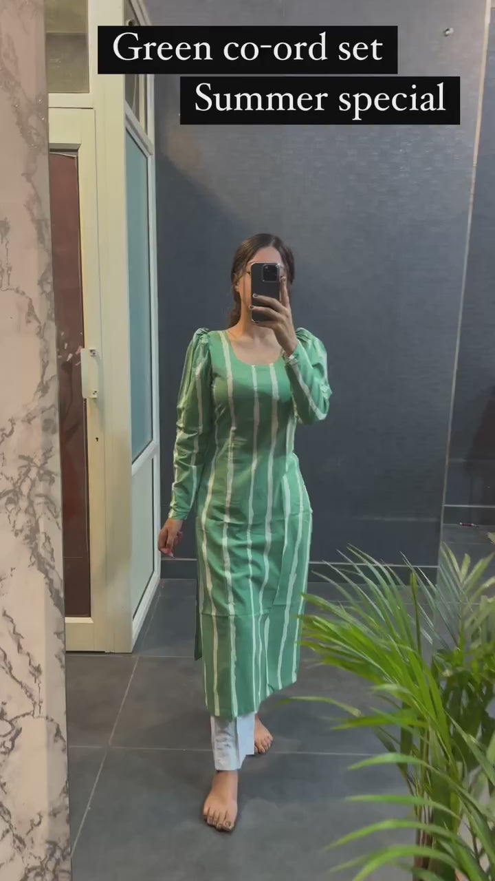 New Green Line Cotton Kurti For Women