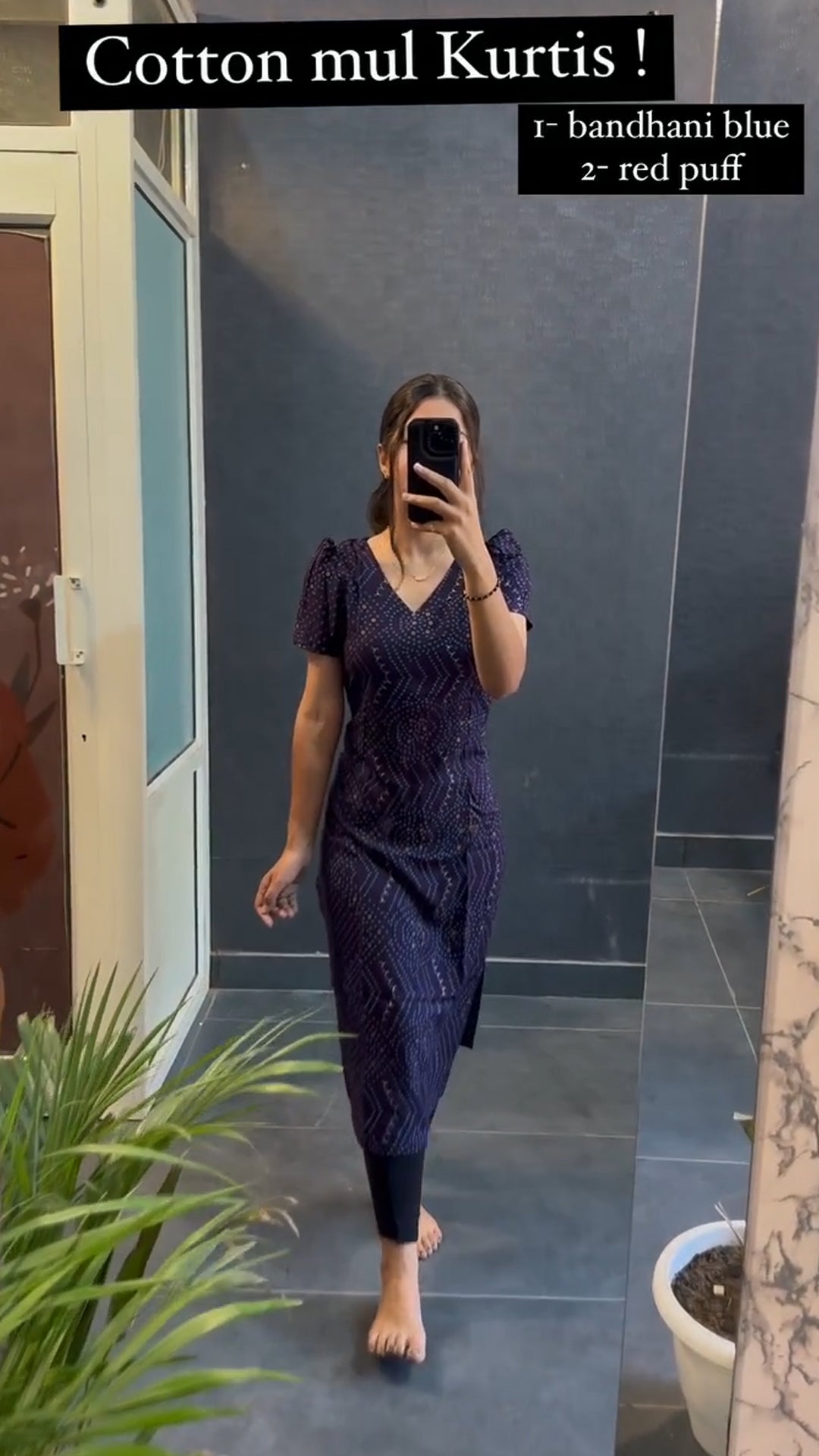 New Blue Bandhani Cotton Printed Kurtis For Women