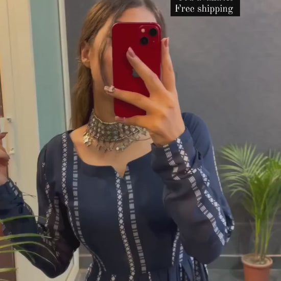 New Blue Schiffon Fabric Nyra Cut Kurta