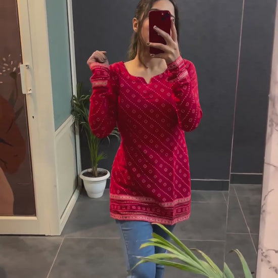 Office Special Short kurtas in Ajrakh Print Lining Attached