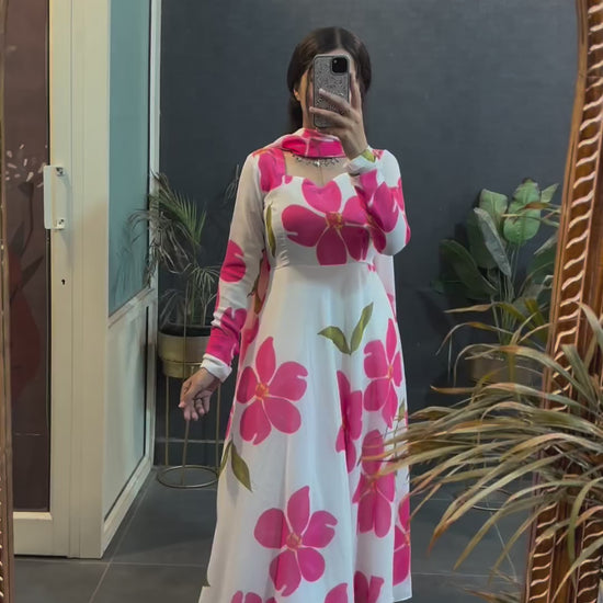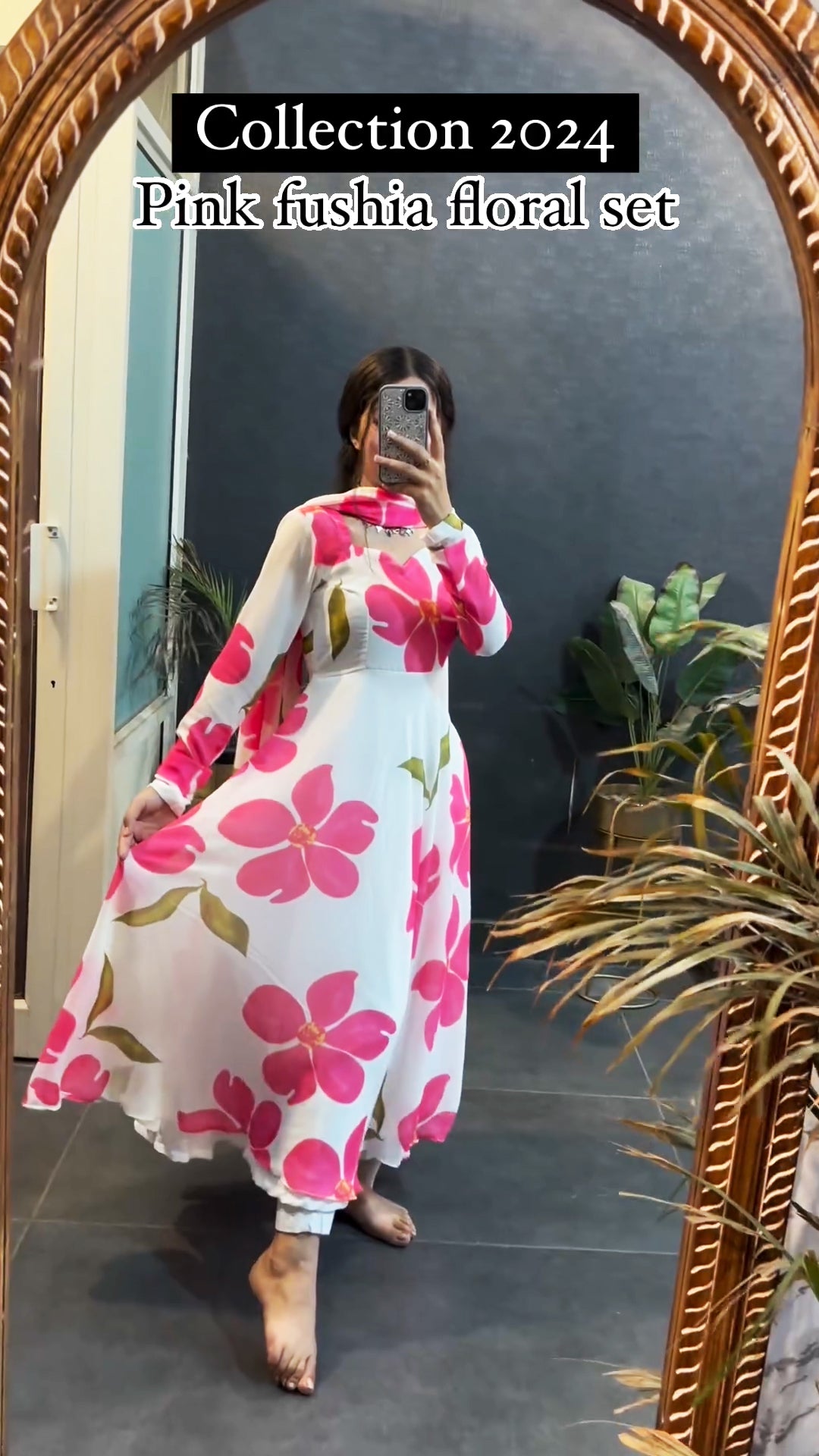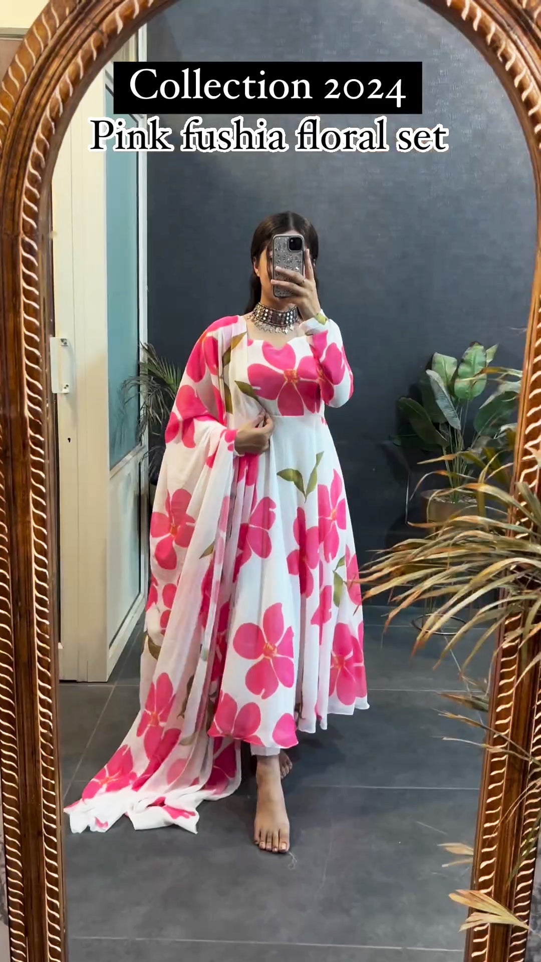 New Collection Pink Fushia Floral Set in Long Sleeves with Duppta