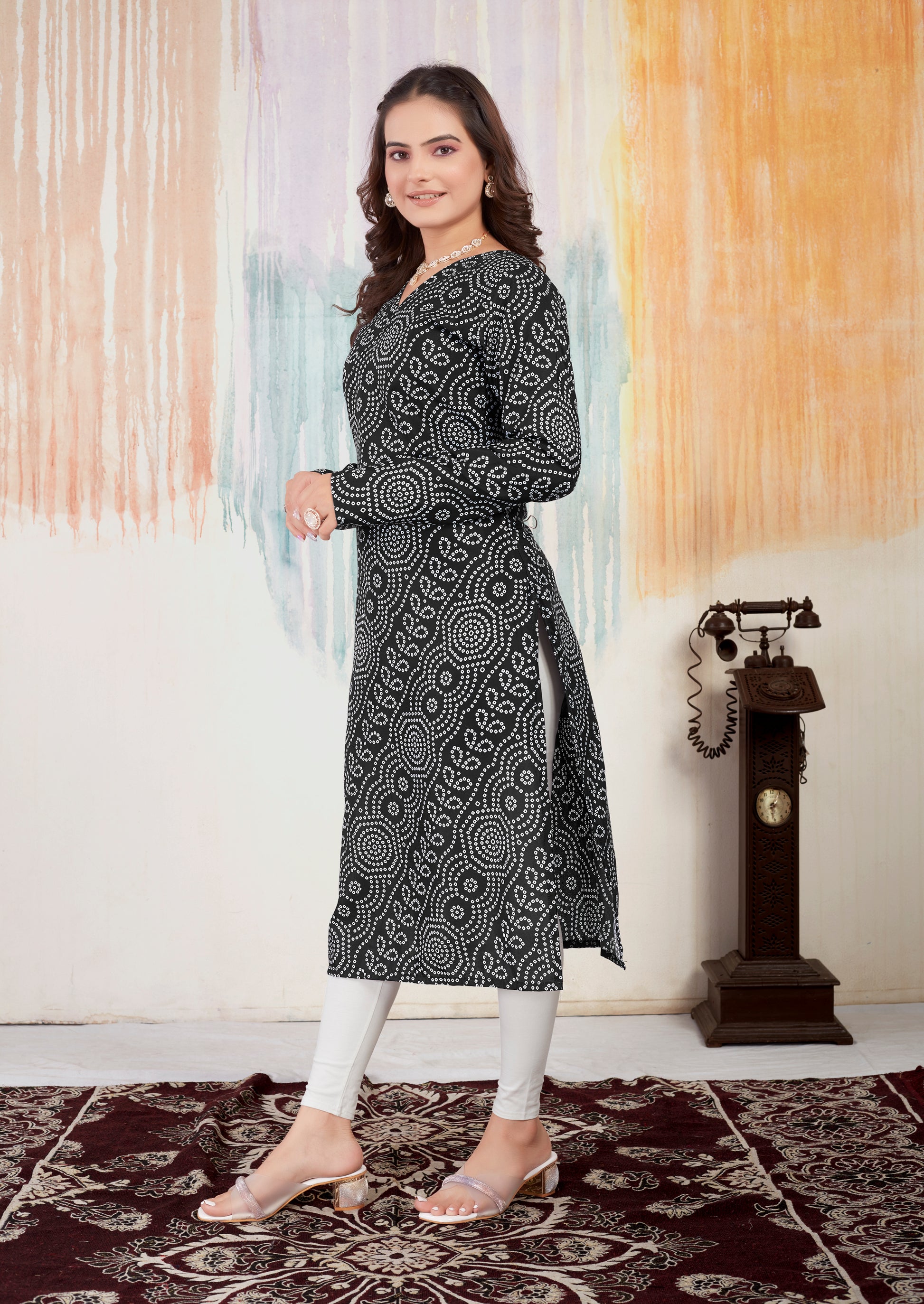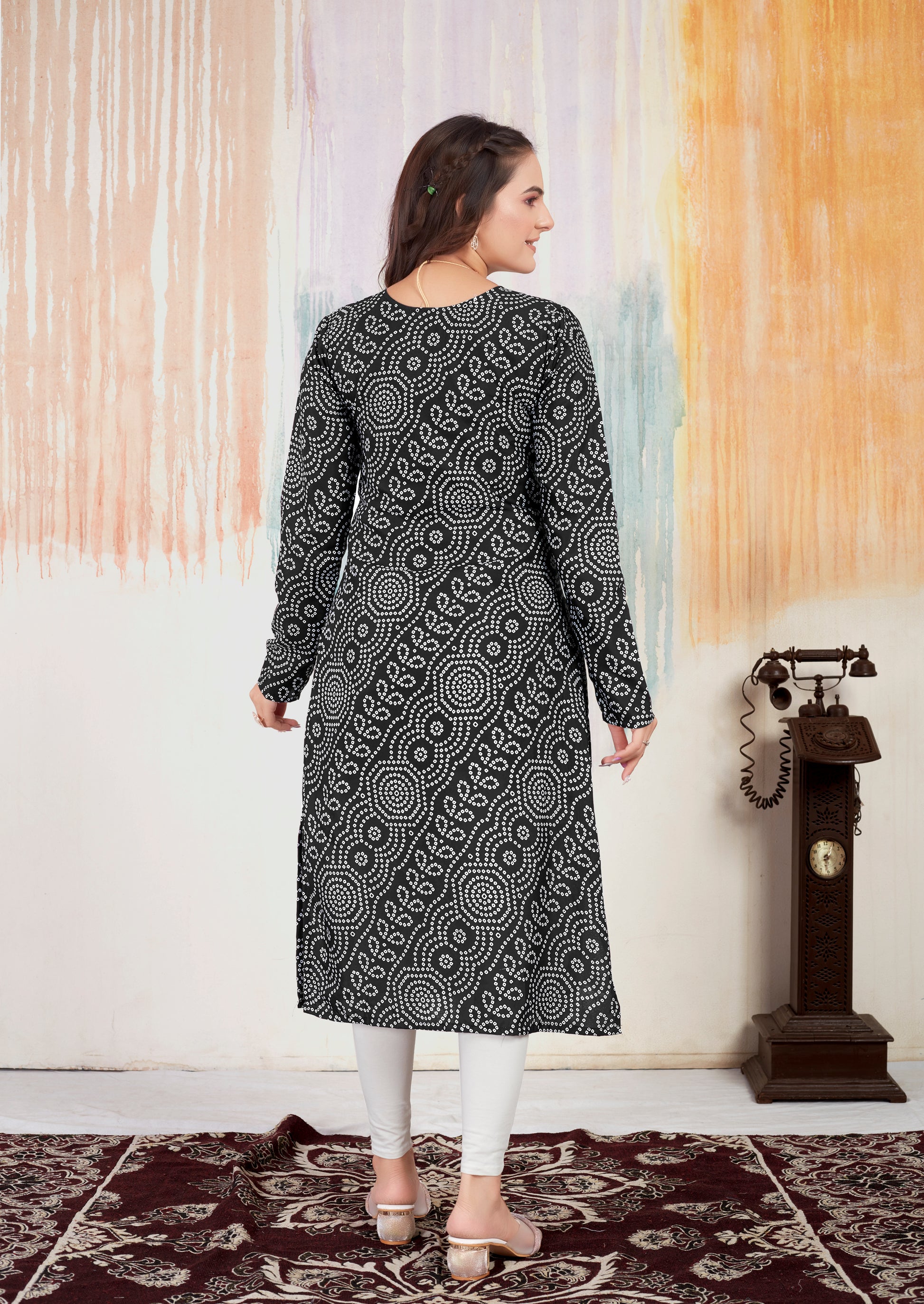 New Full Black Bandhani Kurti For Women