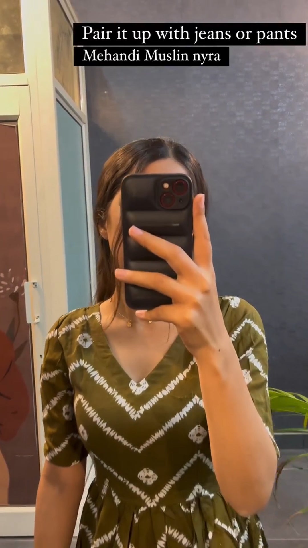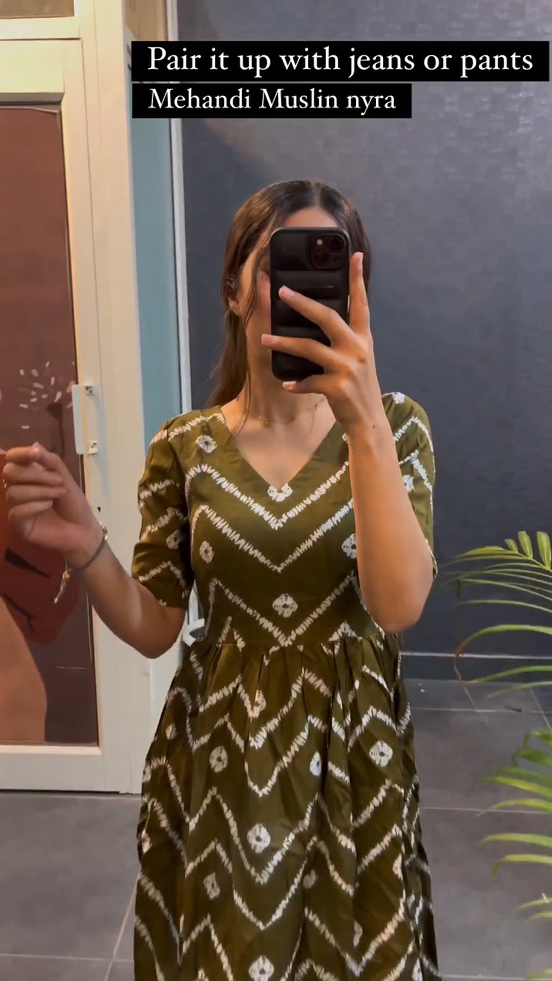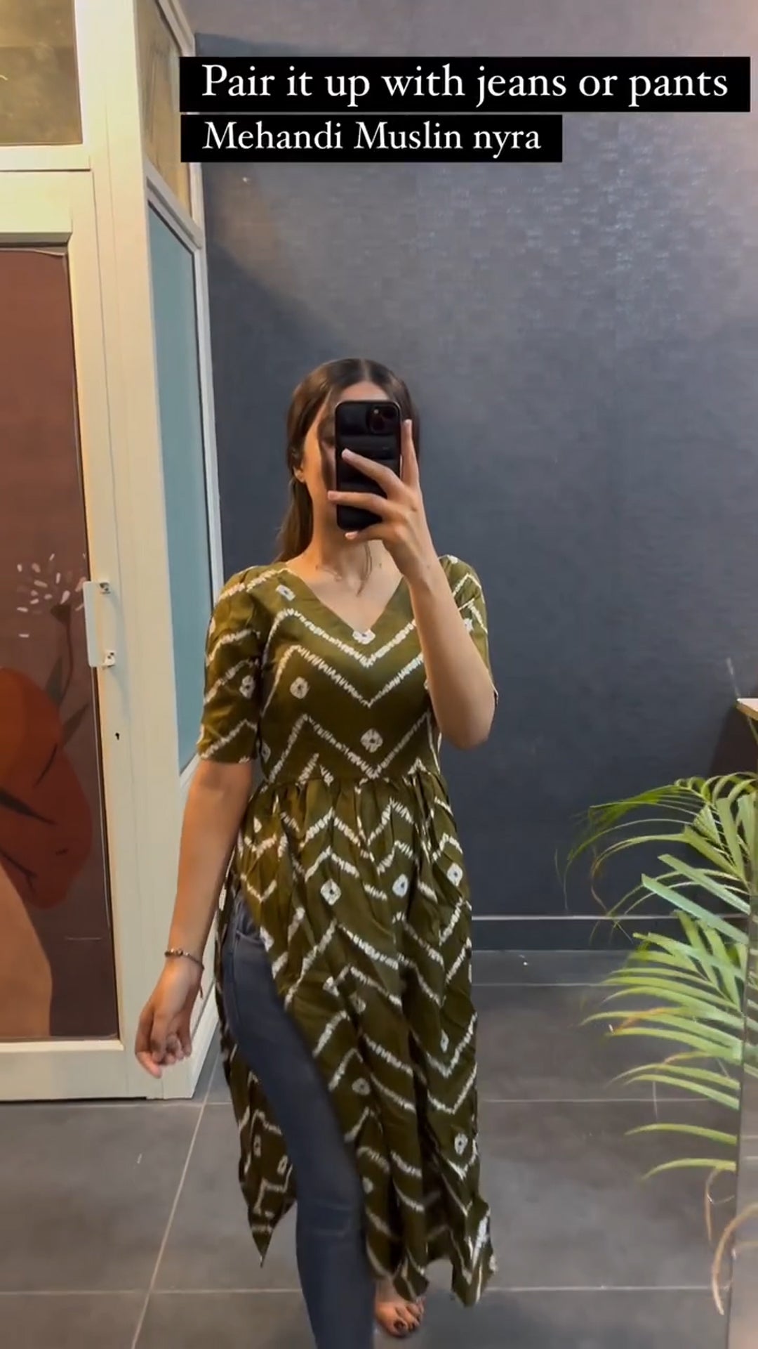 New Womens Mahendi Colour Printed Cotton Nyra Cut Kurti