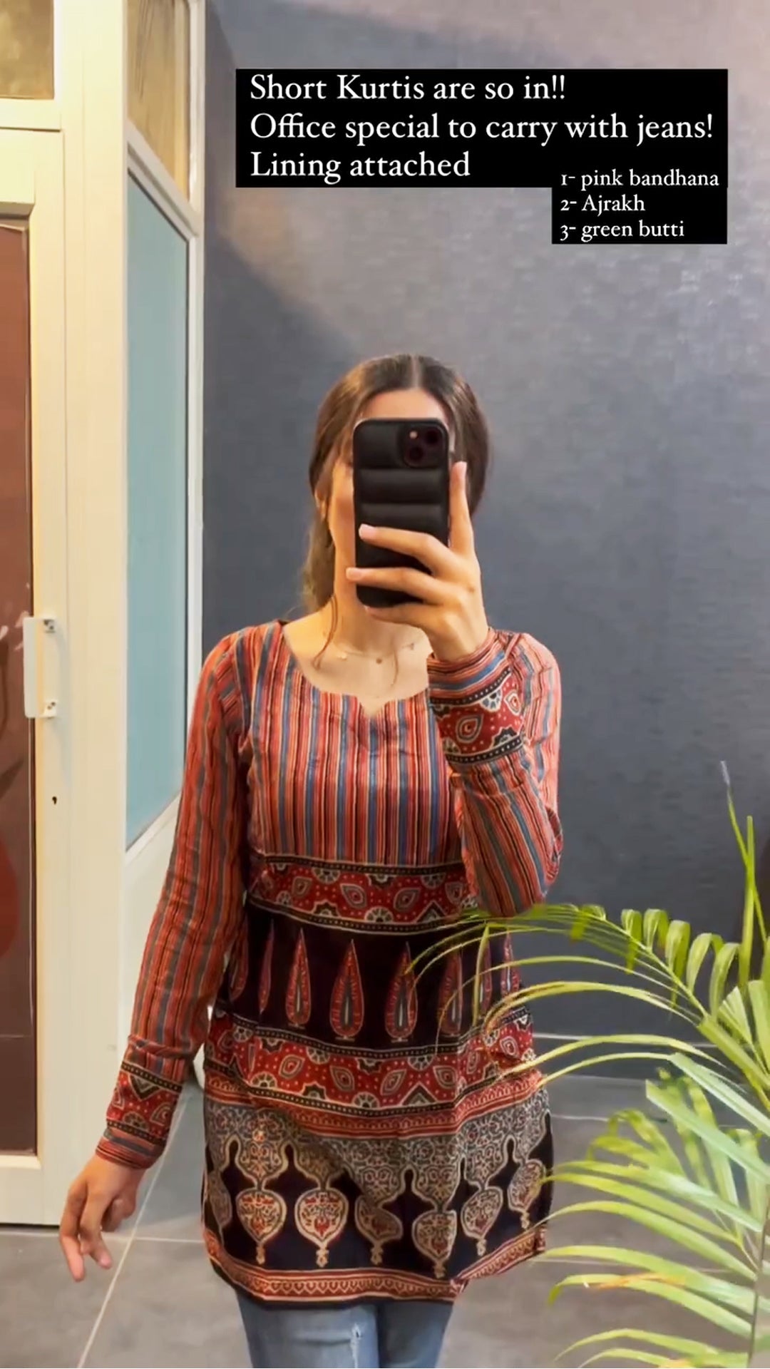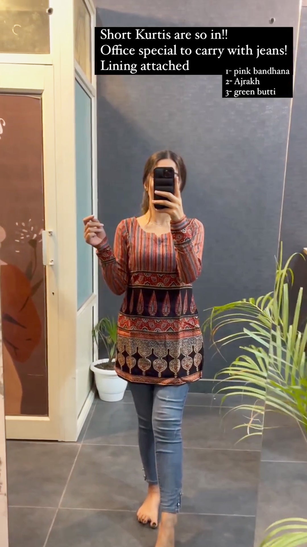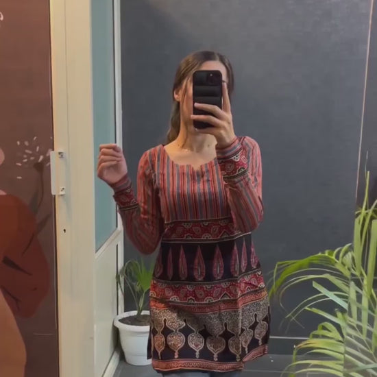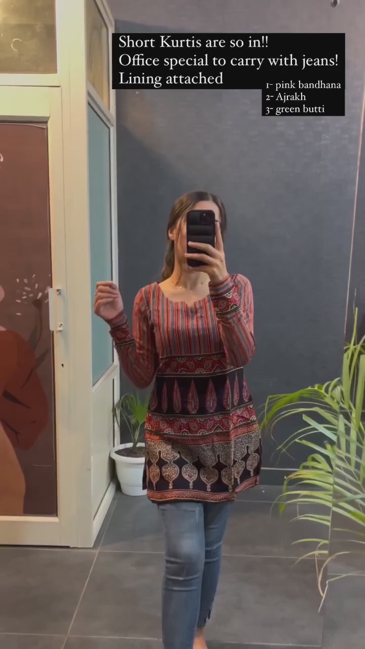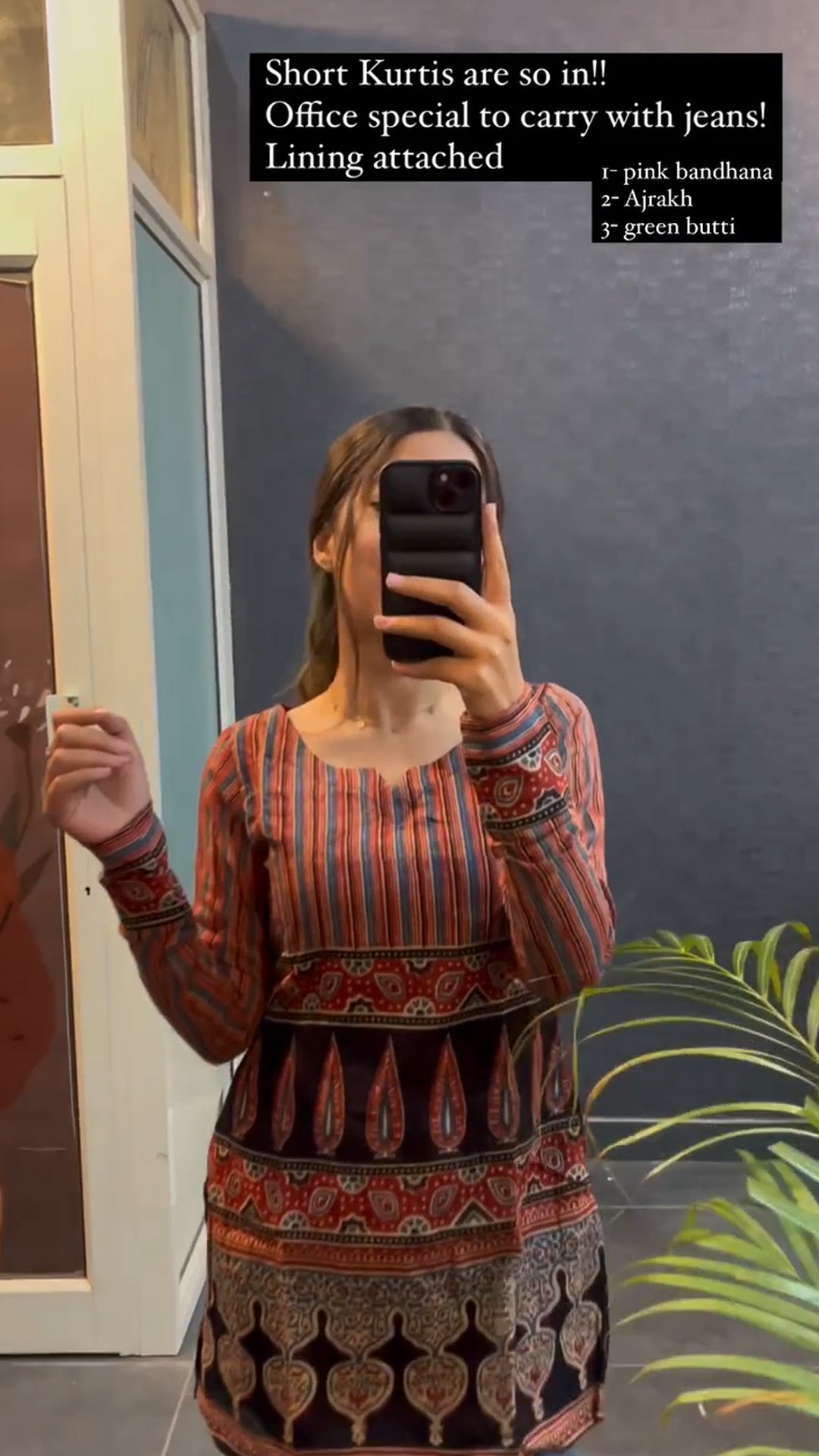 Office Special Short kurtas in Ajrakh Print Lining Attached