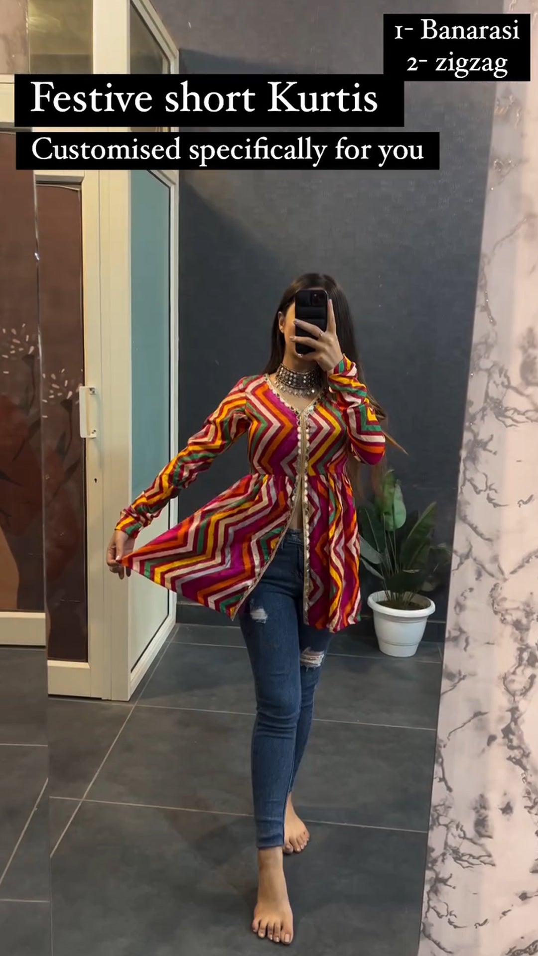 Presented Summer Special Cotton ZigZeg Printed Short Kurtis
